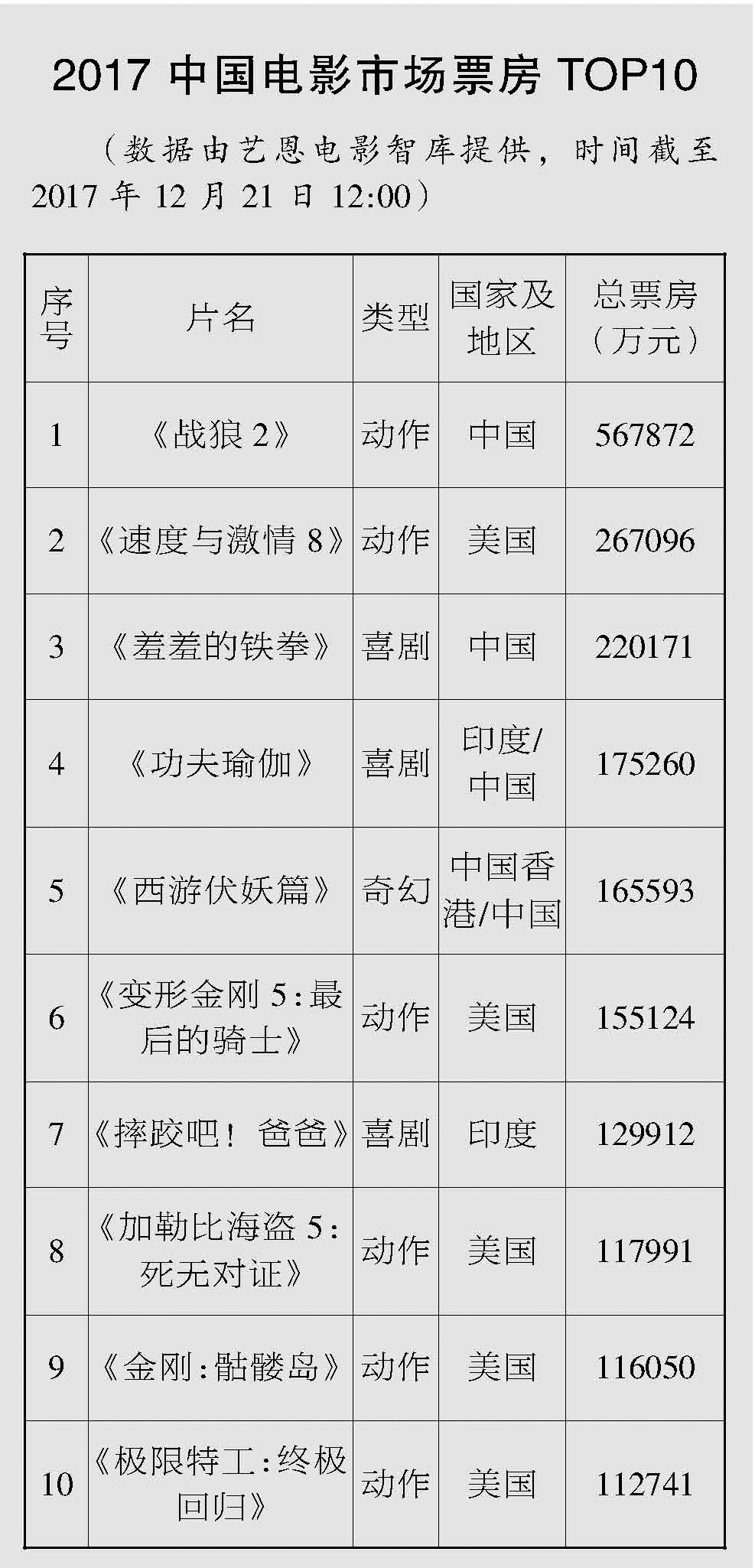(数据由艺恩电影智库提供,时间截至2017年12月21日12:00)