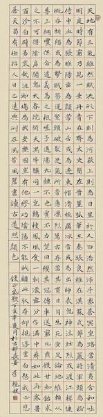 十年前的2008年,丁亥岁,斯年举国悲喜交替,先是汶川地震的哀恸,后是北京奥运的豪迈,已逾天命之年的李艳秋接受了一项特殊的挑战,为佛教圣地草堂寺创作巨幅勒碑作品《妙法莲华经》核心要义,挑战的过程李艳秋融入对生命的思考,不仅体现为对艺术的严谨苛刻的追求,更有对天地终生生死忧患的感悟,历时半个月时间,最终创作成笔墨通泰、气韵高古、庄严相济的鸿篇巨制。
