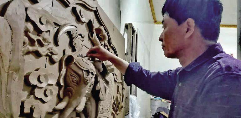 蔡民中制作砖雕 古人云“无雕不成屋,有刻斯为贵”,足见在中国传统古建中雕刻的重要性。砖雕更是对整座建筑起着点睛作用,不仅凸显着户主的身份和意趣爱好,也载负着一种文化传承。