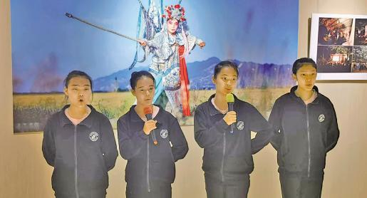展览现场,来自西安艺术学校的4名女生演绎《三滴血》经典唱段,婉转唱腔传递经典韵味 任俊丞/摄 文化艺术报讯(见习记者 任俊丞)9月25日,由西安市群众艺术馆、昆山市文化馆联合主办,陕西艺术摄影学会、江苏省艺术摄影学会、西安易俗社有限公司、昆山当代昆剧院、西安市艺术学校共同协办的“大地回响——秦腔与昆曲影像对话展”在西安市群众艺术馆开幕。