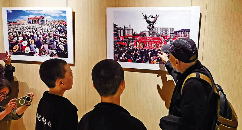 展览现场围满了群众,流动的人群与静止的摄影作品相映成趣。活动中还举行了秦腔艺术的表演活动。来自西安艺术学校的4名男生演唱《三滴血》经典唱段,字正腔圆尽显少年朝气;随后4名女生演绎了《三滴血·兄弟窗前把书念》,婉转唱腔传递经典韵味。一级演员、陕西省戏曲研究院二团著名须生演员、贠宗翰先生入室弟子崔火炎压轴登场,先后演唱《血泪仇》《焦裕禄》选段,醇厚嗓音与精湛演绎赢得满堂喝彩,让观众沉浸式感受秦腔艺术的魅力。