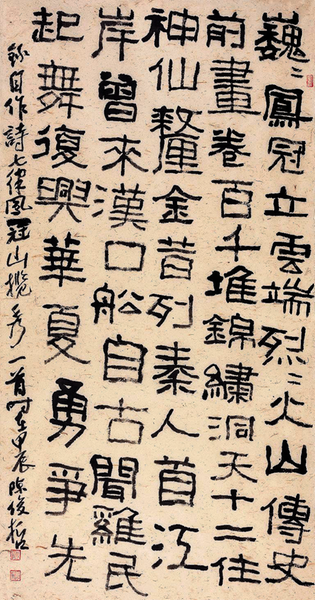 —— 刘炜评(陕西省诗词学会会长、西北大学文学院教授) 俊哲先生丹水商山人也。为人清爽,诗书兼美,尤善草隶。其草雪山崩烟,其隶军阵列岸,森然逼目,颇有气势也。