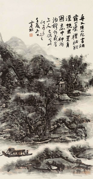 黄宾虹 《溪山深处图》 纸本设色 96cm×50.6cm 1952年 浙江省博物馆藏
