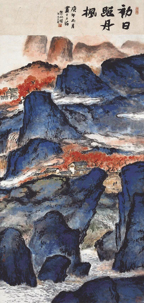 朱屺瞻 《初日照丹枫》 纸本设色 249cm×133cm 1990年 朱屺瞻艺术馆藏