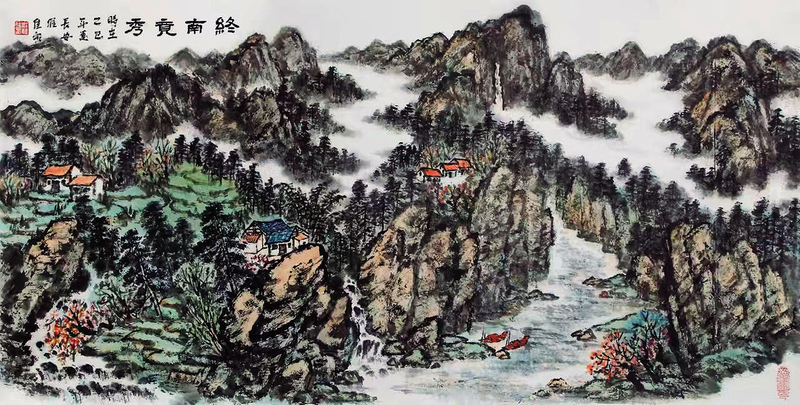 严维佳 《终南竞秀》 纸本设色 69cm×138cm 2025年 对于学画,我原本是无意的。可随着时间的推移,我承认,它已经成了我精神上的陪伴,成了我生活中的诗和远方……2015年秋,我有幸见到了著名国画大师、长安画派代表人物赵振川先生,先生对我的经历很感兴趣,在先生的关心鼓励下,我拿起毛笔,从《芥子园画谱》入手,临“四王”、黄宾虹、赵望云、方济众、赵振川先生的经典作品。次年,我有幸成为北京大学赵振川中国画高研班的第三期学员。俗话说:师父领进门,修行靠个人。说的是虽有名师指点,但平时还得靠自己的坚持与坚守。只有将坚持形成一种习惯,把坚守作为一种信念,两者融合,才能催生出持之以恒的动力和毅力。我知道,犹如中国画讲积墨,就是积累的积,只要日积月累,就能功到自然成;只有坚持坚守,才能收获满满!