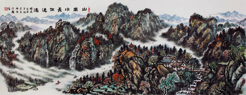 严维佳 《山高水长任逍遥》 纸本设色 69cm×180cm 2025年