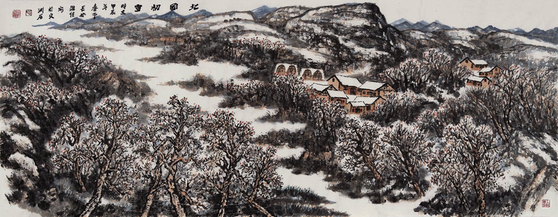 严维佳 《北国初雪》 纸本设色 69cm×180cm 2024年