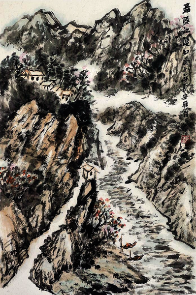 严维佳 《嘉陵江渡口》 纸本设色 67cm×45cm 2020年