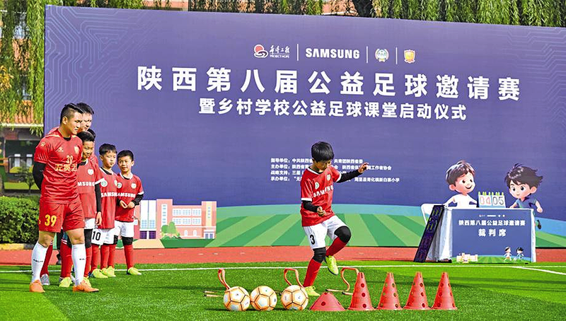 陕西公益足球邀请赛暨乡村学校公益足球课堂自2018年创办以来,参与球队超 50 支,受益青少年超11000人次,在落实全民健身国家战略、促进乡村体育教育、推动乡村校园足球运动发展、助力乡村振兴等方面起到了积极作用。