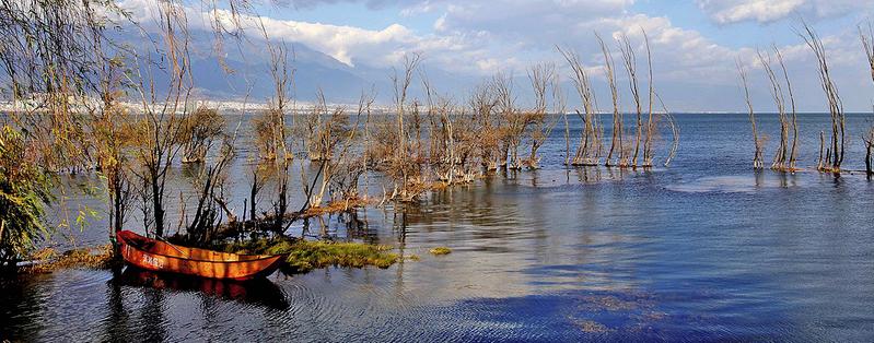 在洱海拍的每一张照片都是一张风景大片,而长在海里的树,看起来有些像枯枝,却又有一种说不出的味道。 大理以“风花雪月”闻名,其中就有著名的“洱海月”。