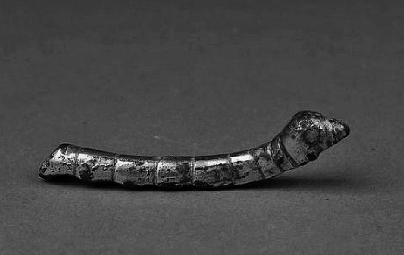在中国历史典籍中,很早就有关于金蚕的记载,比如晋代陆翽的《邺中记》就曾提到,永嘉末年,在春秋霸主齐桓公墓中所发现“金蚕数十箔,珠襦、玉匣……不可胜数”;南朝梁任昉的《述异记》中也记载吴王阖闾夫人墓中发现“金蚕玉燕千余双”;北宋李昉编纂的《太平御览》中也提到秦始皇陵里“以明珠为日月,鱼膏为脂烛,金银为凫雁,金蚕三十箱”……而这些史传笔记中所提到的“金蚕”究竟长什么样子,一直到这只汉代鎏金铜蚕的出土,才算有了实物佐证。