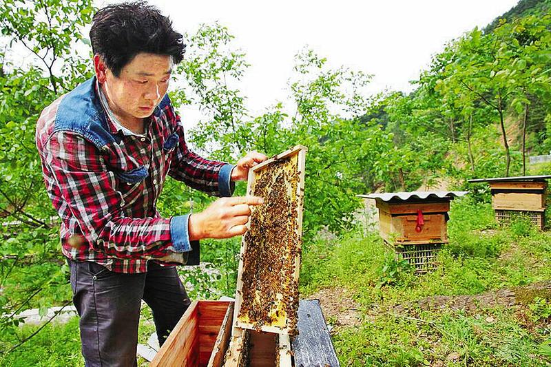 张朝拴的养蜂业不断扩大,仅半年时间,从最初的20箱发展到现在的46箱,年产蜂蜜100余斤,年收入4000多元。