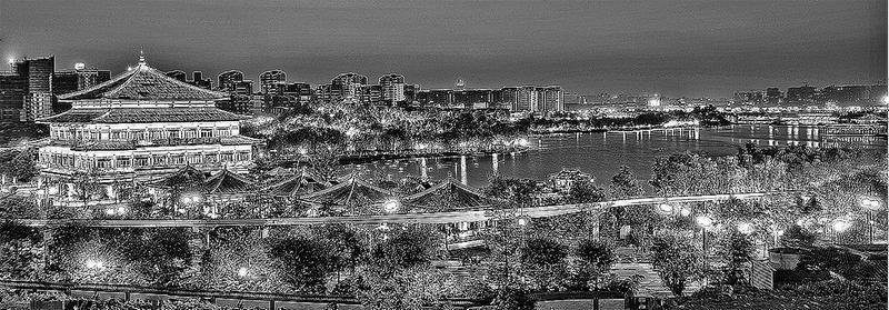 丹江边上的商洛,打出了“秦岭最美是商洛”的招牌,可把陕南各市的百姓妒忌得摇头晃脑了,其实谁不说咱家乡好啊。不过商洛的夜,的确是美滋滋的,离开热闹的城区,沿丹江岸边漫步,可见一排排高低错落的大楼拔地而起,点缀其间的灯饰把整个城市的轮廓动人展现。那感觉真的就像一群美丽的少男少女,有的脸上盖着曼纱穿着彩裙,有的赤着臂膀举着谷穗,蹑手蹑脚地向你悄悄走来,没有喧嚣,没有嬉闹,耳畔犹闻少年的呢喃和蟋蟀的鸣叫。这种夜,美得静谧,美得纯粹,美得都不敢随意高声,生怕惊跑了羞赧的夜光。