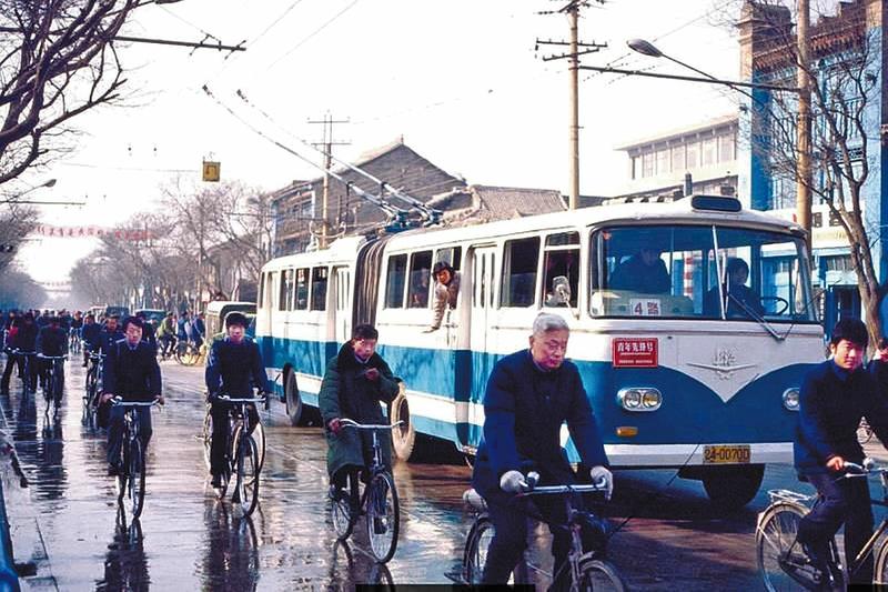80年代,西安西大街一辆正在行驶的4路车。