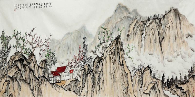 凡是成就一个山水画家,一般来说要具备四大基本功:一是传统山水技法的刻苦临习,二是书法的笔法技巧掌握,三是名山大川的熏陶历练,四是哲学、美学、诗词等国学的底蕴支撑。对于军科来说,这四点他是在协调发展的,也就是说他是在按照艺术创作的内在规律前进的。