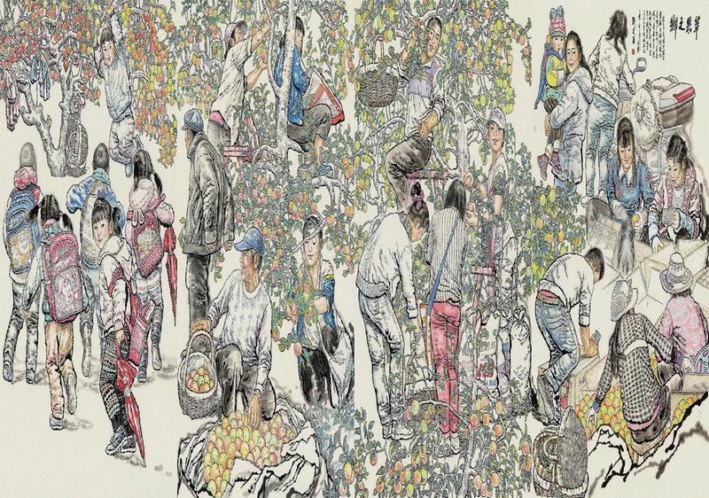 百米长卷《黄土地的主人》之“苹果之乡” 文化艺术报讯(记者 昌龙利 白振华)喜迎十九大,黄土画派创始人刘文西百米长卷《黄土地的主人》,10月10日-20日亮相西安美术学院美术馆。12日,西安市委书记王永康观看画展,并问候85岁高龄的刘文西先生。西安美院书记王家春陪同。