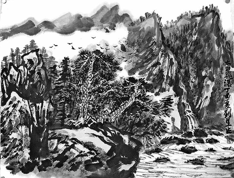 刘星擅长山水,却钟情花鸟,二者虽然底蕴一如而自家风貌兼具,也都深隐个性风骨,却显而易见,各自独立:各占云峰,云卷云舒;各占风流,自是一流。他精于书道,长于篆刻,楷行隶草无不得心应手,汉字的结构之美与书写的法度之变了然于胸而被他巧妙化合,使他的绘画得天独厚而游刃有余,腾挪贯通而随心所欲,蜻蜓点水而又画龙点睛。他饱读诗书,满腹主张,笔墨气韵自生自长,画语格局别有气象升腾。又好写生,大千世界,花鸟虫鱼,芸芸众生,无不入他法眼,又无不使他“踏破铁鞋无觅处,得来全不费工夫”。他的山水灵动,花鸟飘逸,题款古拙,既通文学、文史,又接地理、地气。人们对此啧啧称羡,但是否琢磨过他的神来之笔,实初始于画外神功?天赋觉悟,厚积薄发,水到渠成也。他好读书,爱写作,更有数学作根底,这使他一朝跻身画坛,便明显优于同侪,也就怪不得他虽然“半路出家”,却很快“立地成佛”了。齐白石是木匠出身,工匠之长使他手心一如,巧夺天工。我确信,本科数学使刘星终生受益。他之所以笔下呼风唤雨,未必不受力学原理点化启示;他之所以纸上蝶飞凤舞,未必不受数学思维点拨、提神。只眼独具,自然是别出心裁;独辟蹊径,当然就别有洞天了!