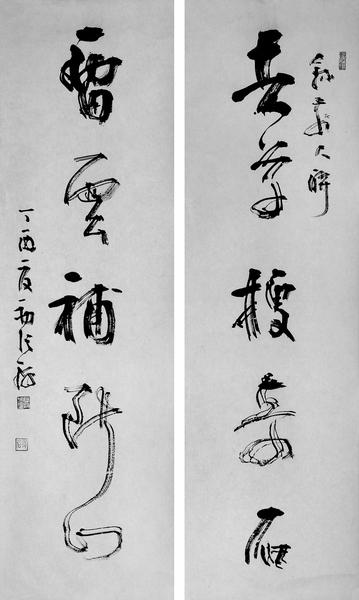 对联:去草搜奇石,留云补断山