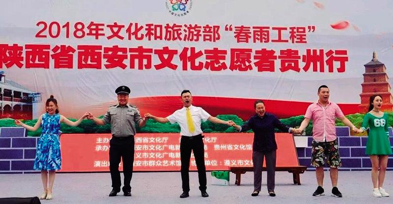 文化艺术报讯(记者 魏韬)5月29日上午,2018年文化和旅游部“春雨工程”陕西省西安市文化志愿者贵州行文艺展演活动在遵义举行。此次活动由陕西省文化厅、贵州省文化厅主办,西安市文化广电新闻出版局、贵州省文化馆、遵义市文化广电新闻出版局承办,遵义市文化馆协办。
