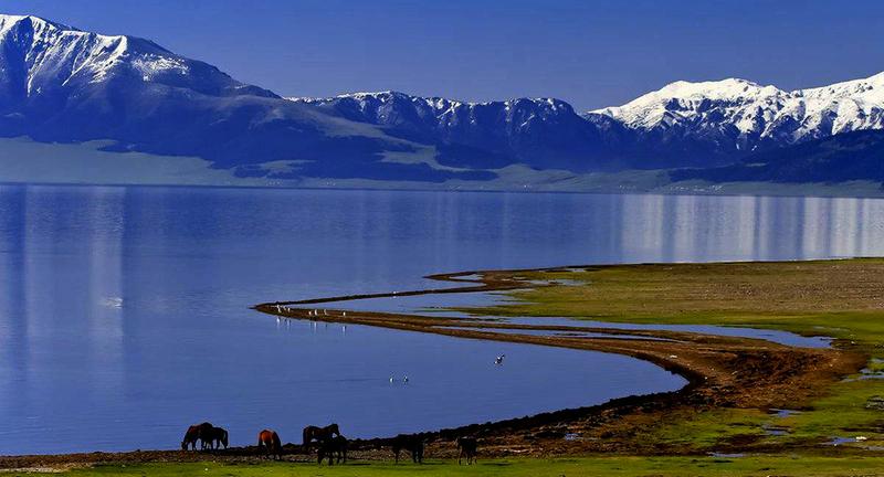 湖水清凉凉的,掬一捧在手中,里面有青天、白云、红霞、绿草、黄花、棕马,还有蓝蓝的,蓝蓝的赛里木湖水。