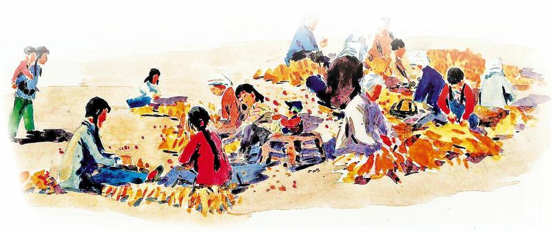 于是爷爷用钉耙把打碎的玉米芯慢慢拉开,沉底的碎末里隐约有一些散落的玉米粒。“那能有多少呀?就那么一点点,也太精细了吧。”我不屑地说。奶奶把底下的碎末扫出来,堆在一起,再用筛子一点一点地筛出来,一把一把地抓出来,倒在袋子里。很神奇,慢慢的那半袋子玉米鼓起来了,眼看就满了,可是筛完了,我开心地笑了起来,“看看,就算这样也没有装满吧!我赢啦!”奶奶笑了笑说:“你别急,还有呢。”