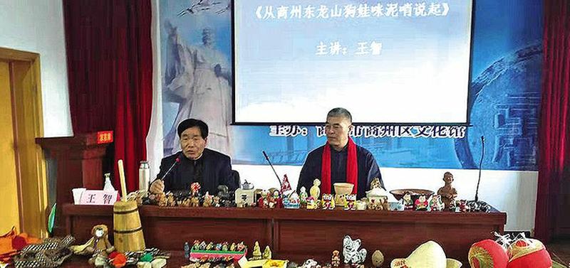王智以《从商州东龙山狗娃咪泥哨说起》为题,分享个人收集的100多件实物和影像资料,还与商州区东龙山狗娃咪传承人陈五斤等民间 艺人进行互动交流,并现场解答听众的提问。