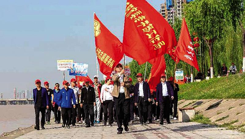 开幕前,陕西省市领导与近万名老同志在咸阳湖边一起健步走,参观老年社团成果展和千幅书画摄影作品展。