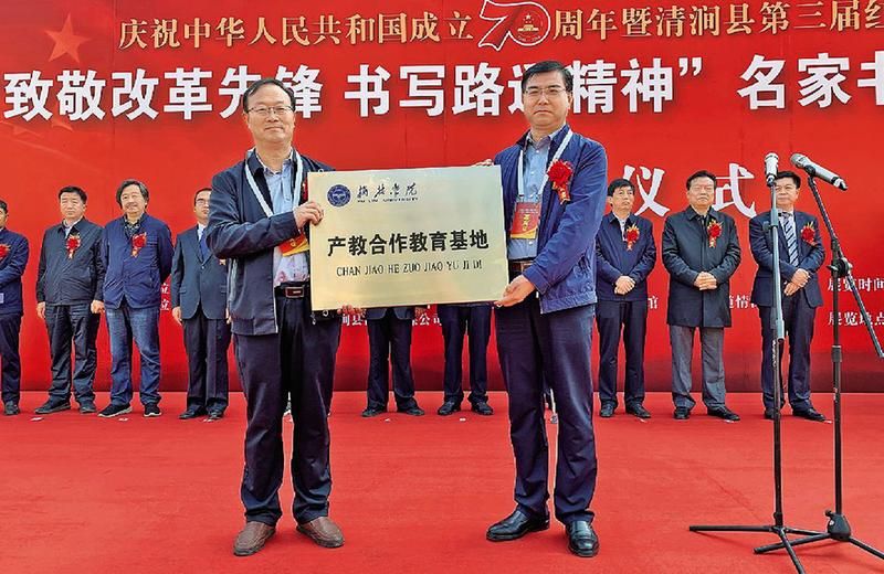 在路遥纪念馆,“致敬改革先锋,书写路遥精神”名家书法作品邀请展开展仪式暨纪念路遥诞辰70周年座谈会召开。开展仪式上,榆林学院文学院院长为路遥纪念馆授“产教合作教育基地”牌匾。此次书法展共展出作品60余件,在工作人员的带领下,嘉宾们在路遥书苑有序参观了当代书法名家的作品。
