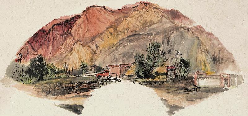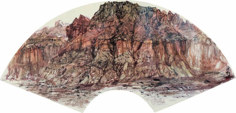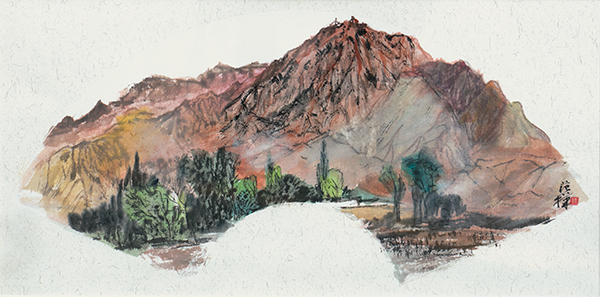 范华青海写生系列扇面