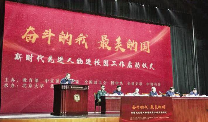 文化艺术报讯 为更好地用先进人物引领社会主义核心价值观建设,激励广大师生奋进新征程、建功新时代,日前,教育部、中央宣传部、国务院国资委、全国总工会、共青团中央、全国妇联和中国科协在北京大学联合启动“奋斗的我最美的国”新时代先进人物进校园工作。