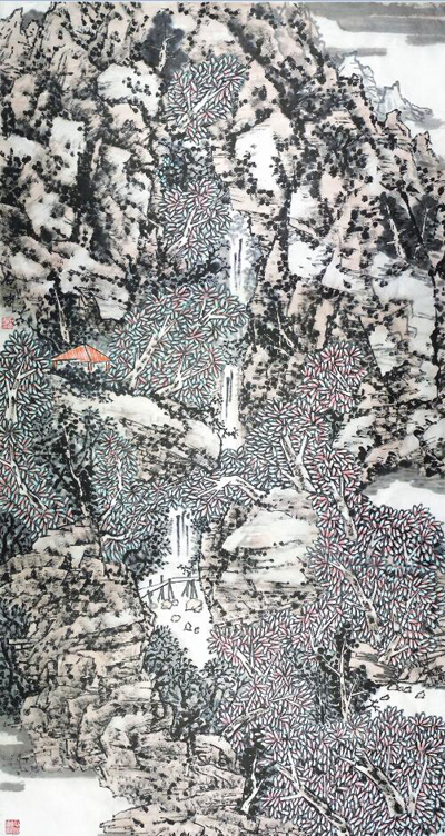 刁宏斌 《山之中》 190cm×95cm 纸本设色 2019年