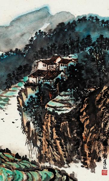 刘星 《秦岭人家》 纸本设色 70cm×42cm 2018年