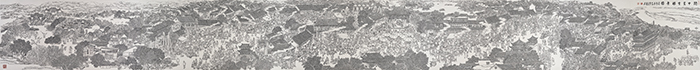 汶振鑫 《舌尖丝路——关中美食胜景图》 纸本白描 100cm×1000cm 2019年 (国家艺术基金青年艺术创作人才资助项目)