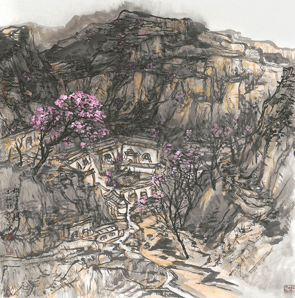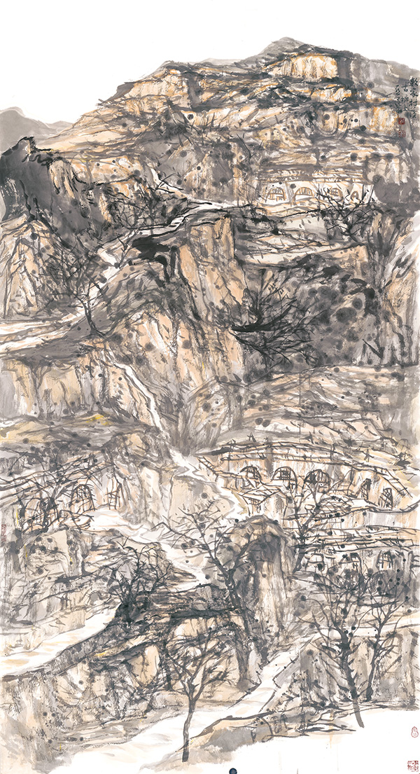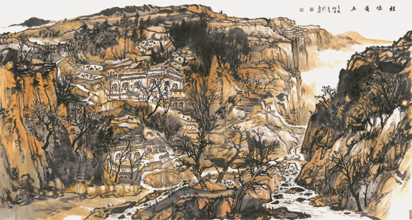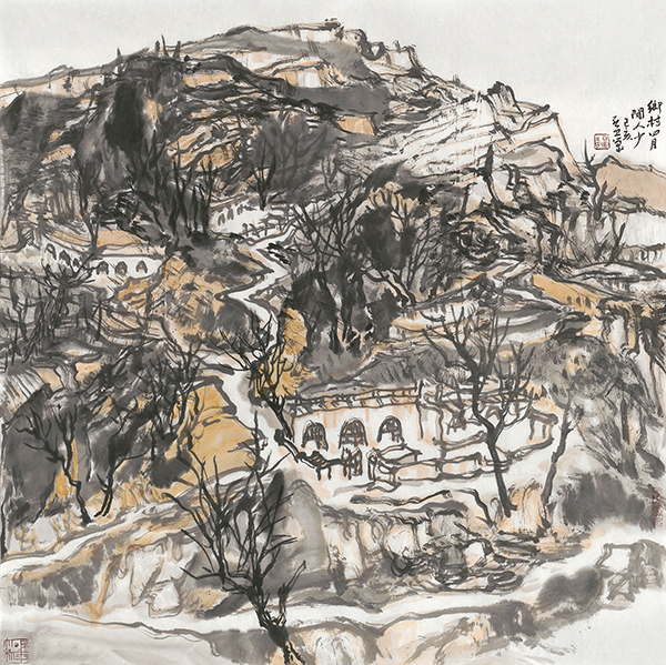 欧亚卫 《根系黄土》 纸本设色 178cm×95cm 2019年欧亚卫 《数家村落古塬上》 纸本设色 96cm×177cm 2019年欧亚卫 《亭小得山多》 纸本设色 190cm×235cm 2017年欧亚卫 《乡村四月闲人少》 纸本设色 68cm×68cm 2019年欧亚卫 《始信春恩不私物》 纸本设色 68cm×68cm 2019年