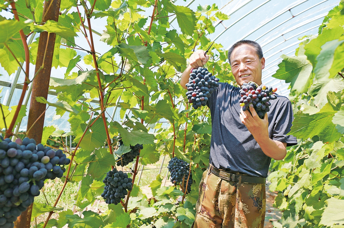中鸡镇纳林采当村股份经济合作社小葡萄“串”起扶贫大产业。丁向龙/摄