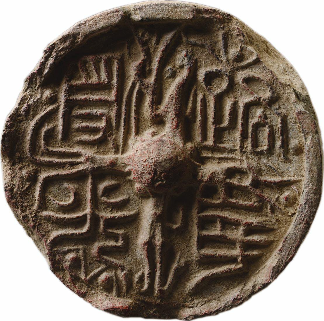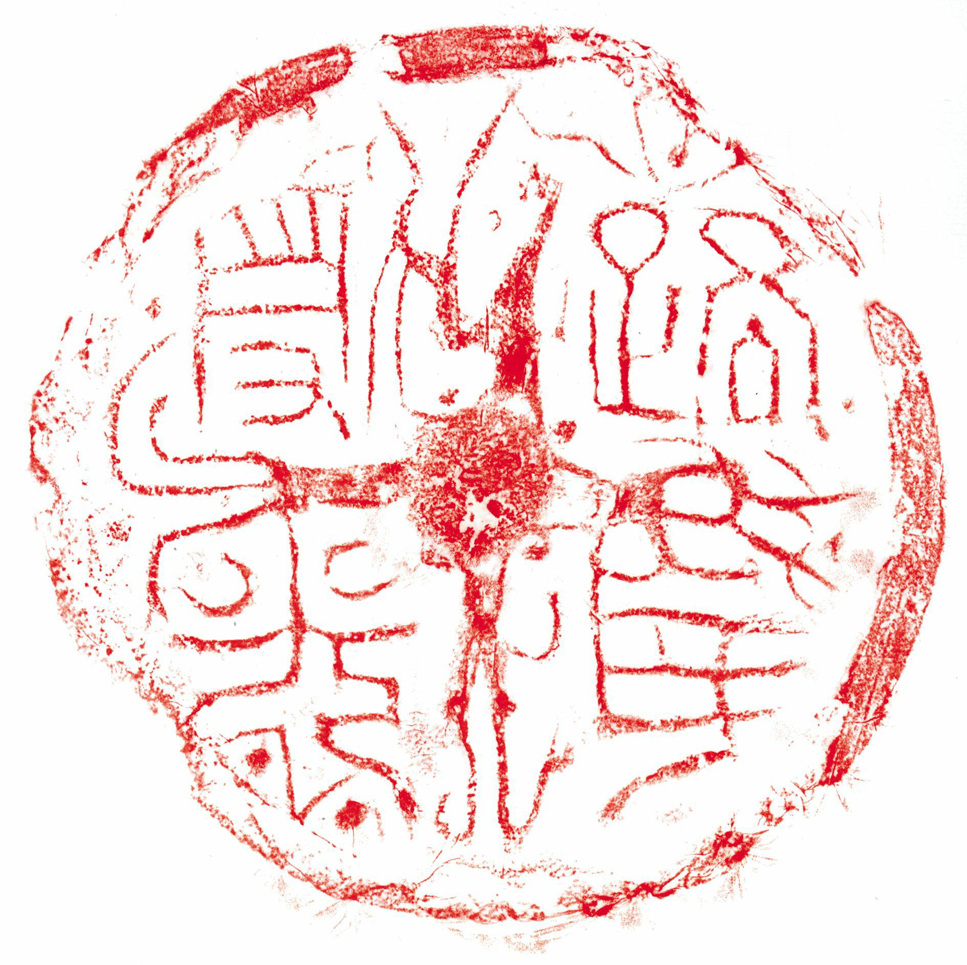 汉代祠堂用瓦。直径18.0厘米。中心圆突外两枝嘉禾构成十字格界,每格一字,篆书,右读。字体纠绕弯曲,笔画圆润流畅,富有装饰性。整个布局颇有汉代铜镜之意味。该瓦发现于山西省夏县禹王城遗址,现藏于西安秦砖汉瓦博物馆。