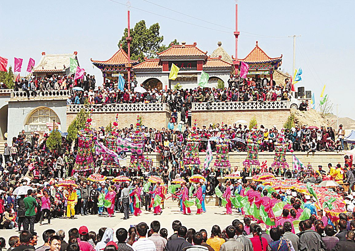 白草寺的文化聚落功能作用,通过“庙会”这一文化空间得到充分展示。白草寺每年有三次盛大庙会,即农历三月三日、四月八日、八月十五日,其中三月三是祖师庙会,三月四是娘娘庙会,四月八是佛祖庙会;八月十五是玉皇庙会。庙会期间,四方香客远道前来,北至内蒙,南至河南、东至山西、西至宁夏,香火特别旺盛。加之有戏班助兴,热闹非凡。
