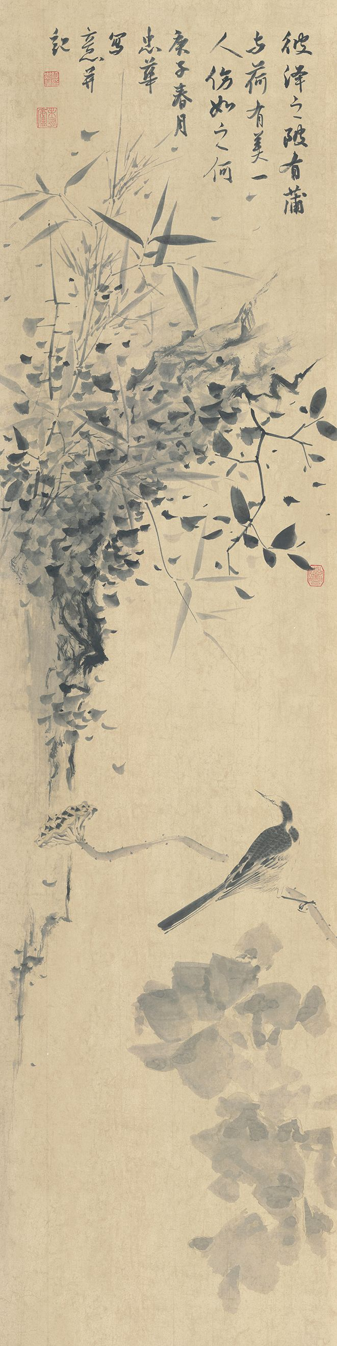 姬忠华 《山野小禽》 纸本水墨 136cm×35cm 2020年