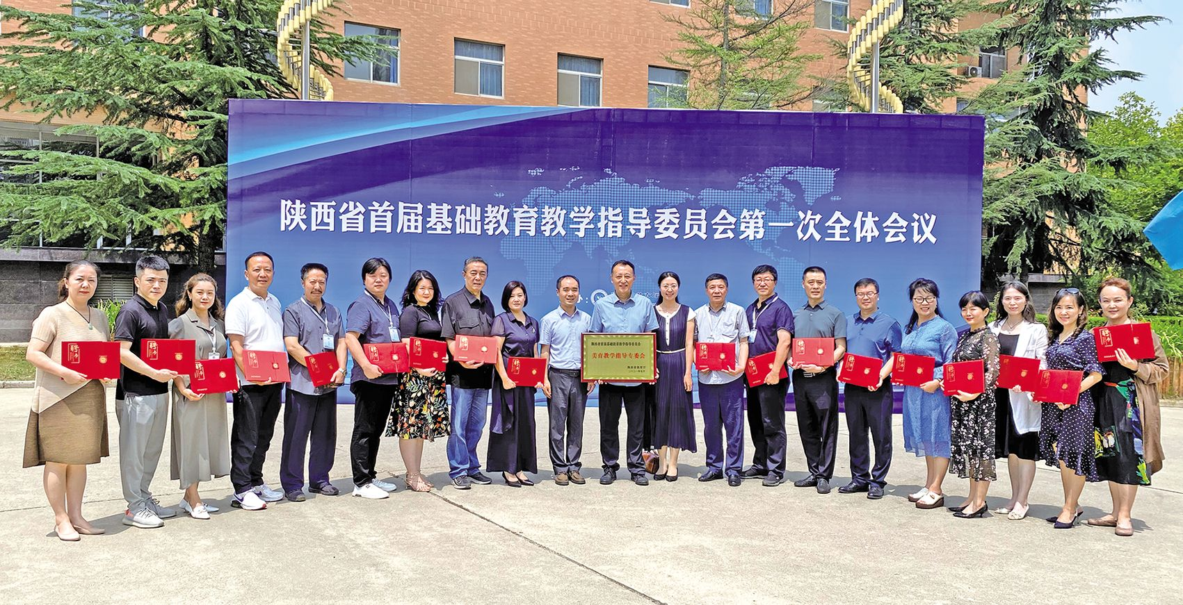 陕西省美育教学指导专委会委员合影 文化艺术报讯(全媒体记者 何超锋)2021年7月22日,陕西省首届基础教育教学指导委员会第一次全体会议在陕西省西安中学召开。陕西省人民政府副省长方光华,教育部基础教育司司长吕玉刚,陕西省人民政府副秘书长张军林,陕西省委教育工委副书记、省教育厅厅长刘建林,教育部教育发展研究中心副主任陈如平,陕西省委教育工委委员、省教育厅副厅长刘宝平出席会议。陕西省委教育工委委员、省教育厅副厅长赵昶葆主持会议。