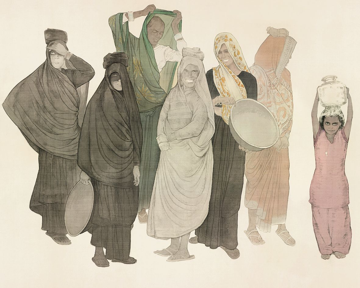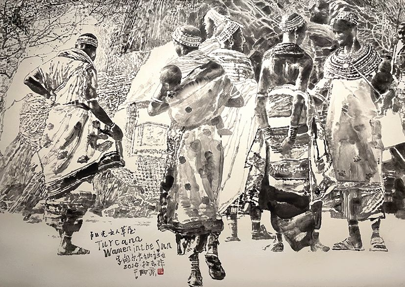 王西京 《阳光女人草屋》 纸本水墨 172cm×243cm 2014年