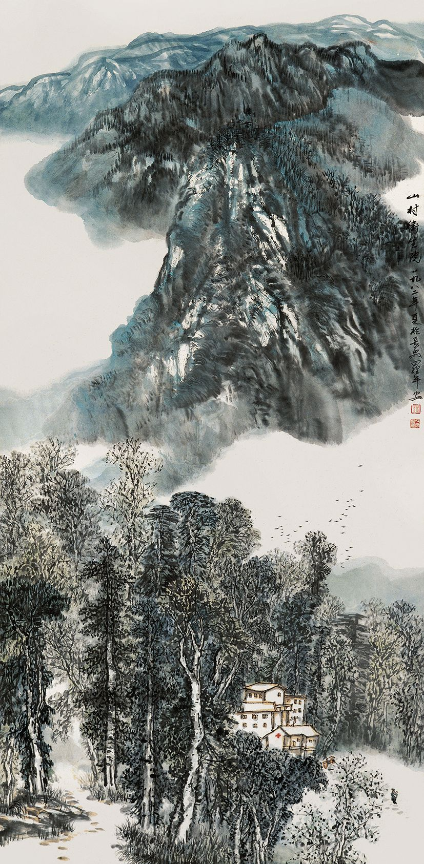 罗平安 《山村卫生院》 纸本设色 138cm×68cm 1982年