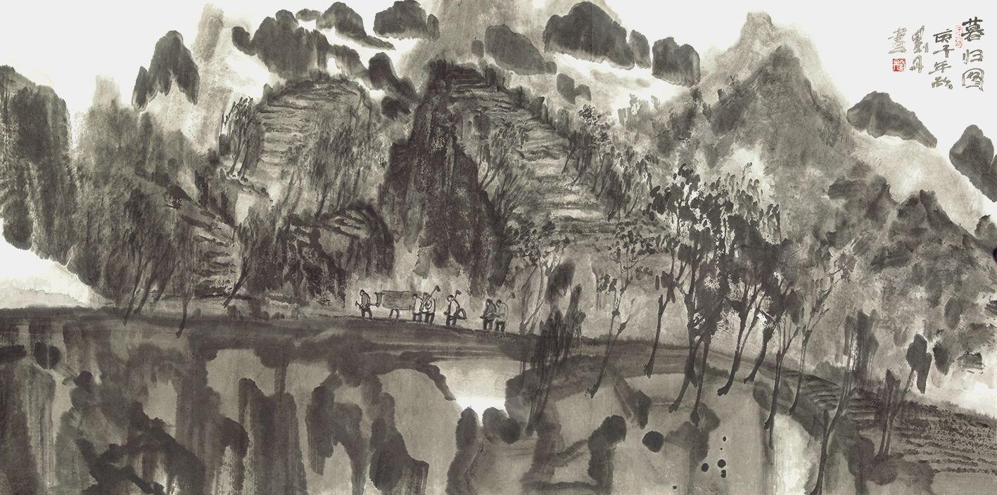 刘丹 《暮归图》 纸本水墨 68cm×138cm 年代不详