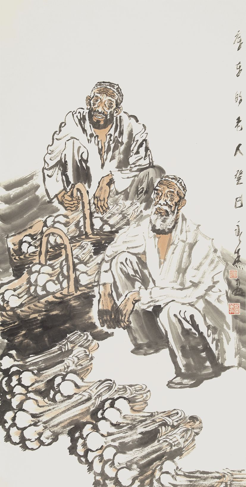 刘永杰 《库东的老人》 纸本设色 138×68cm 2013年