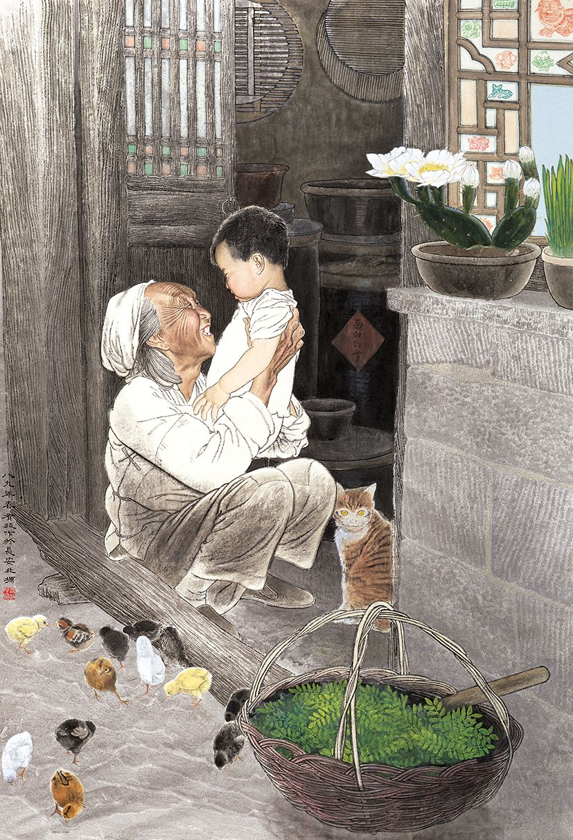 王有政 《奶奶 孙孙》 纸本设色 161cm×110cm 1989年