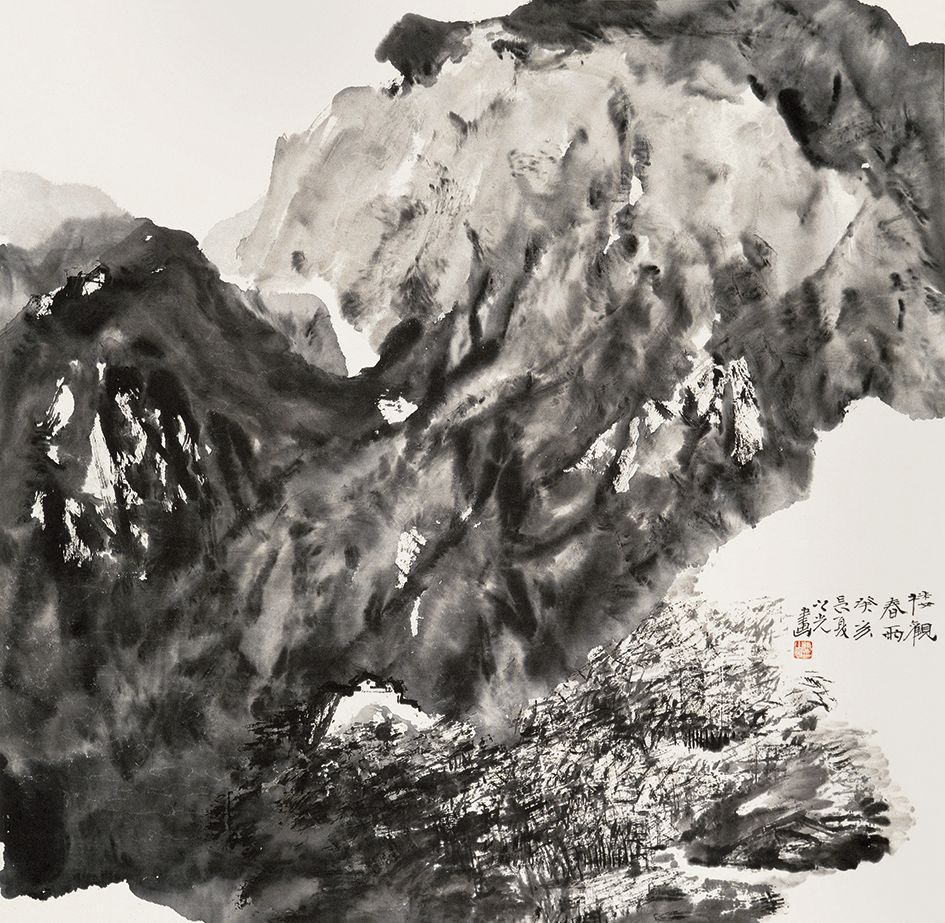 张之光 《楼观春雨》 纸本水墨 67cm×69cm 1983年
