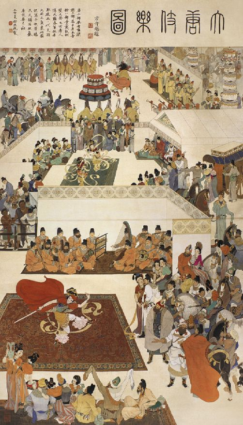 谢振瓯 《大唐伎乐图》 绢本设色 180cm×97cm 年代不详
