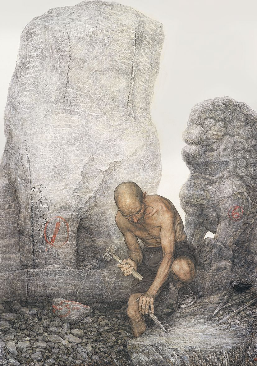 杨光利 《中国民工 石工》(入选全国第九届美展) 纸本设色 219cm×153cm 1999年