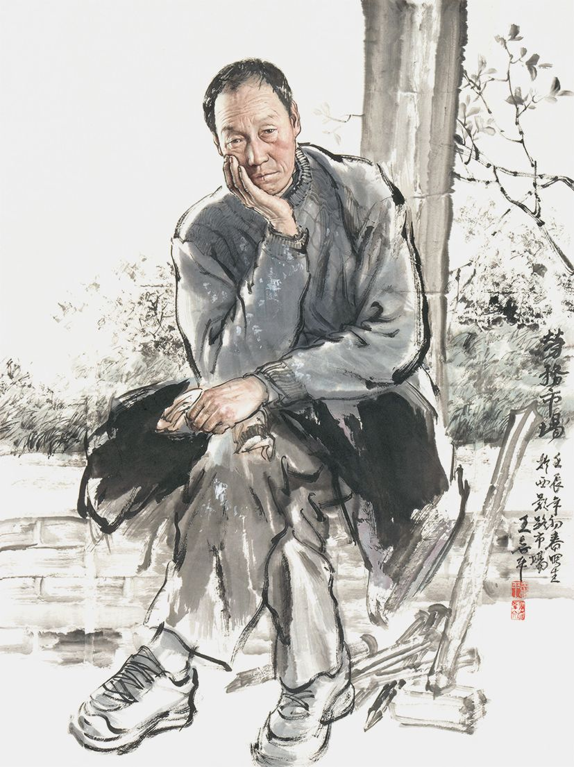 王志平 《 劳务市场》 纸本设色 170cm×97cm 2012年