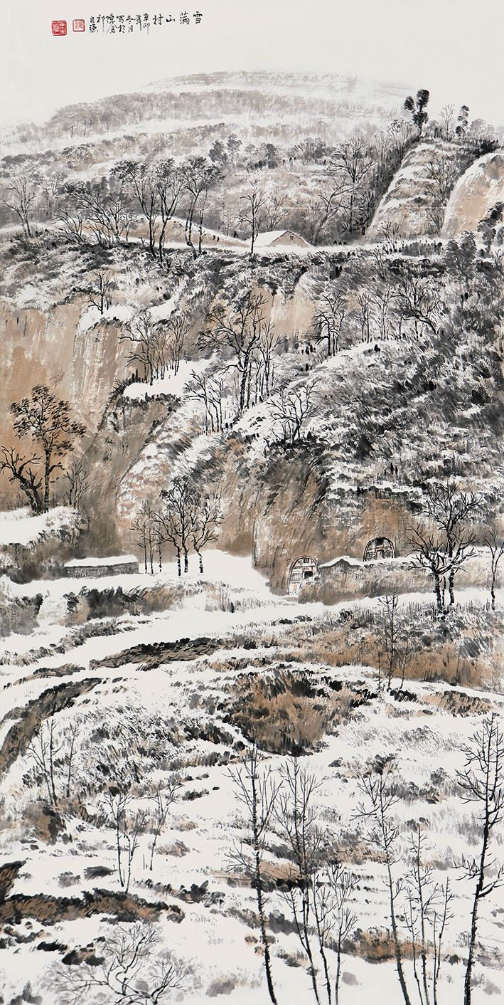 祁自强 《雪满山村》 纸本设色 138cm×69cm 2012年