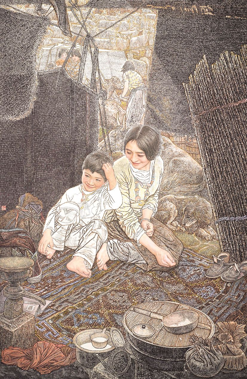 王慧 《格桑的家》 纸本设色 199cm×132cm 2018年